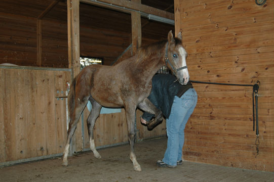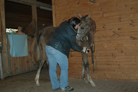 Schon von klein auf, werden unsere Schützlinge mit Ihrem neuen Lebenspartner "Mensch" vertraut gemacht. Wir verbringen sehr viel Zeit mit ihnen, sodass die Fohlen schnell einen Bezug zum Menschen finden. Putzen, Hufe geben, Aufhalftern und Führen ist für sie selbstverständlich.