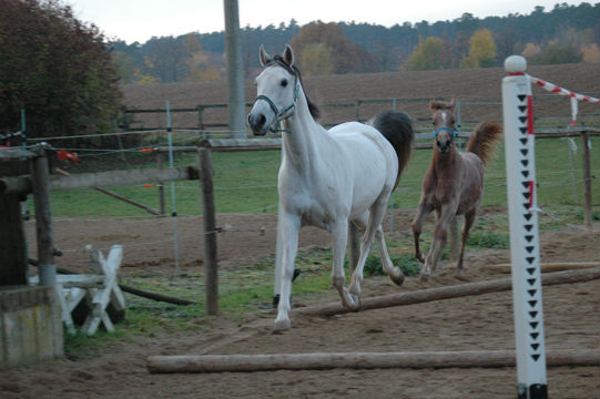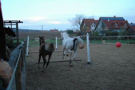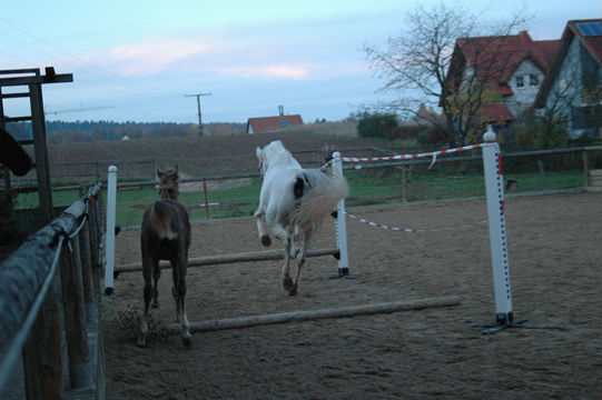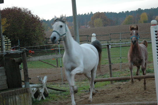 In meiner Freizeit bin ich mit meinen Freundinnen und deren Müttern sowie mit anderen Stuten auf der Koppel zum Toben und Relaxen.