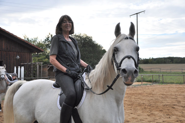 Züchterin Claudia Brodesser auf Ihrem Prämienhengst Saramour2