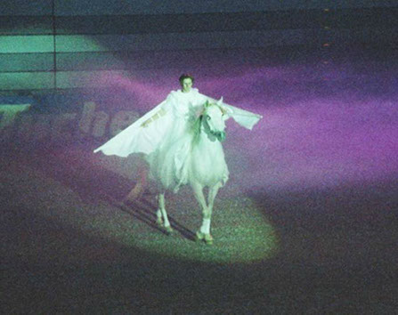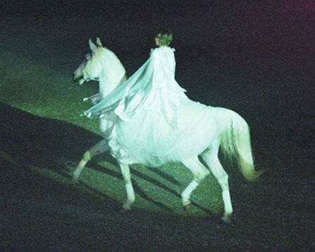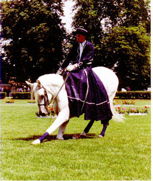 Aber auch bei Showeinlagen ist er voll dabei - egal, ob als Pegasus bei "Faszination Pferd" in Nürnberg, oder mit "Sissi" im Damensattel bei der WM 2006 in Aachen.